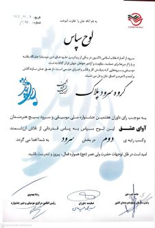 اختتامیه هفتمین جشنواره سراسری موسیقی و سرود «آوای عشق»/گروه سرود پلاک از استان قزوین در بین گروههای سرود منتخب سراسر کشور موفق به کسب رتبه دوم شد